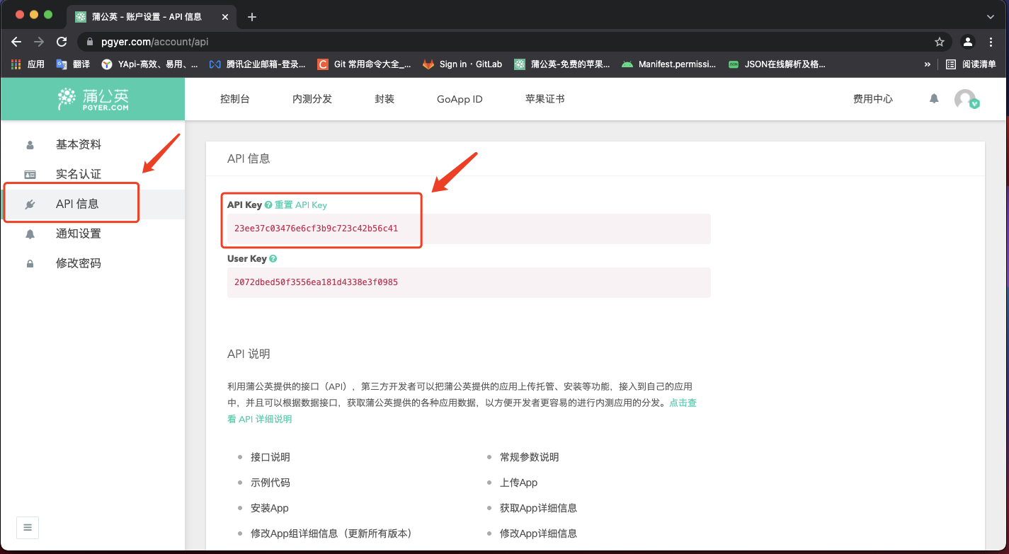 1、首先需要填写您的「APIKEY」,可以通过点击“点击获取”跳转到我们蒲公英网页获取参数。(必填)