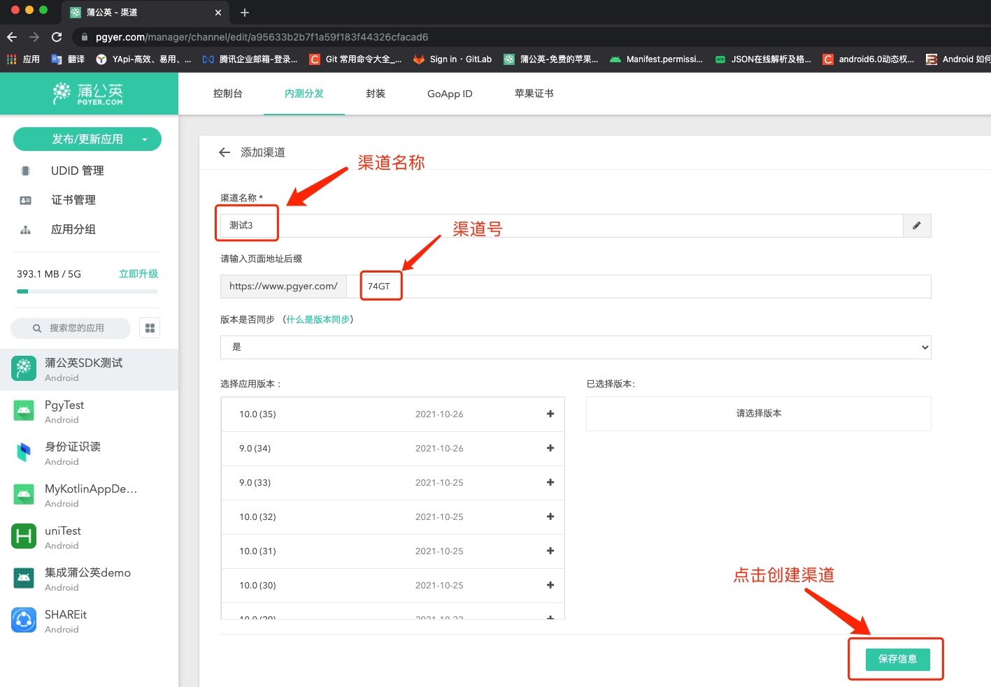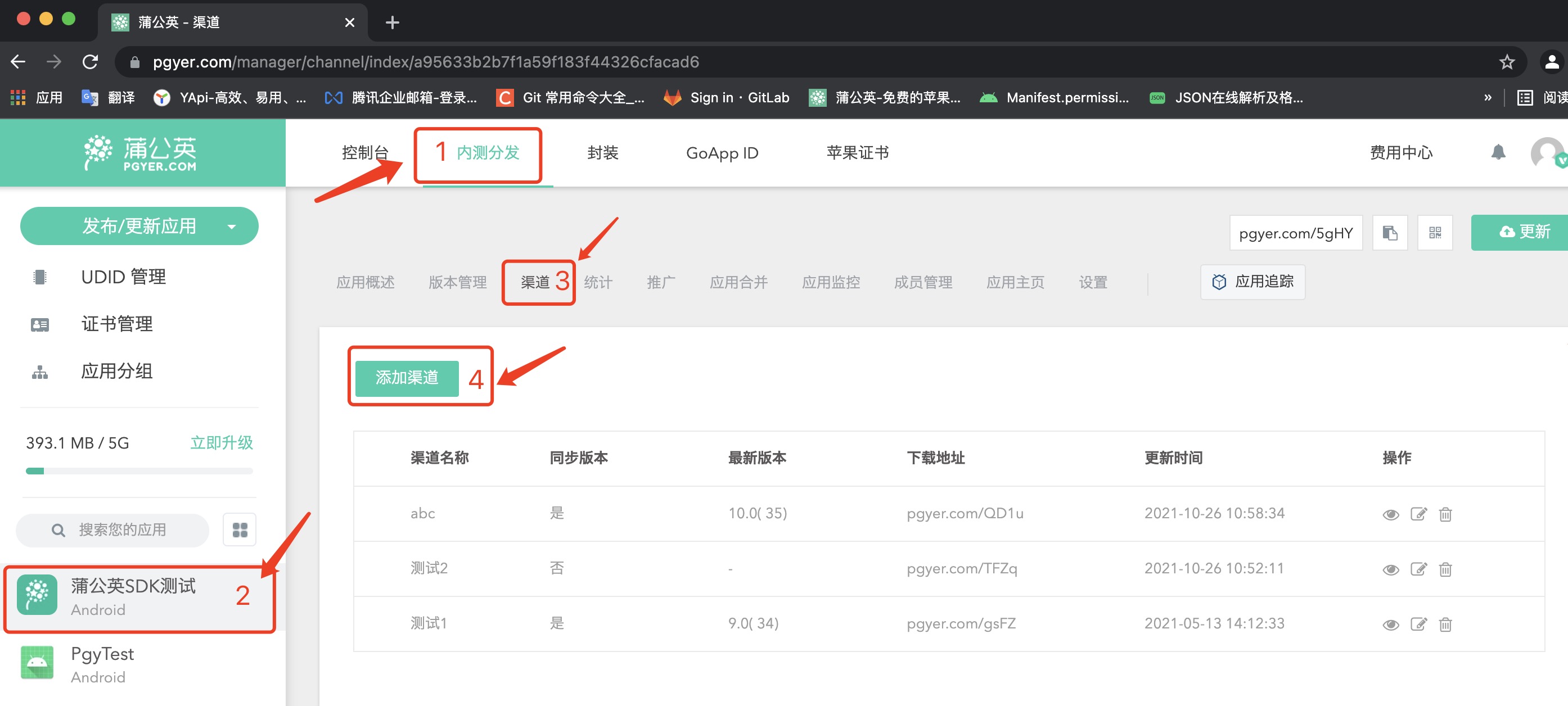获取渠道号https://www.pgyer.com/manager/dashboard/app/